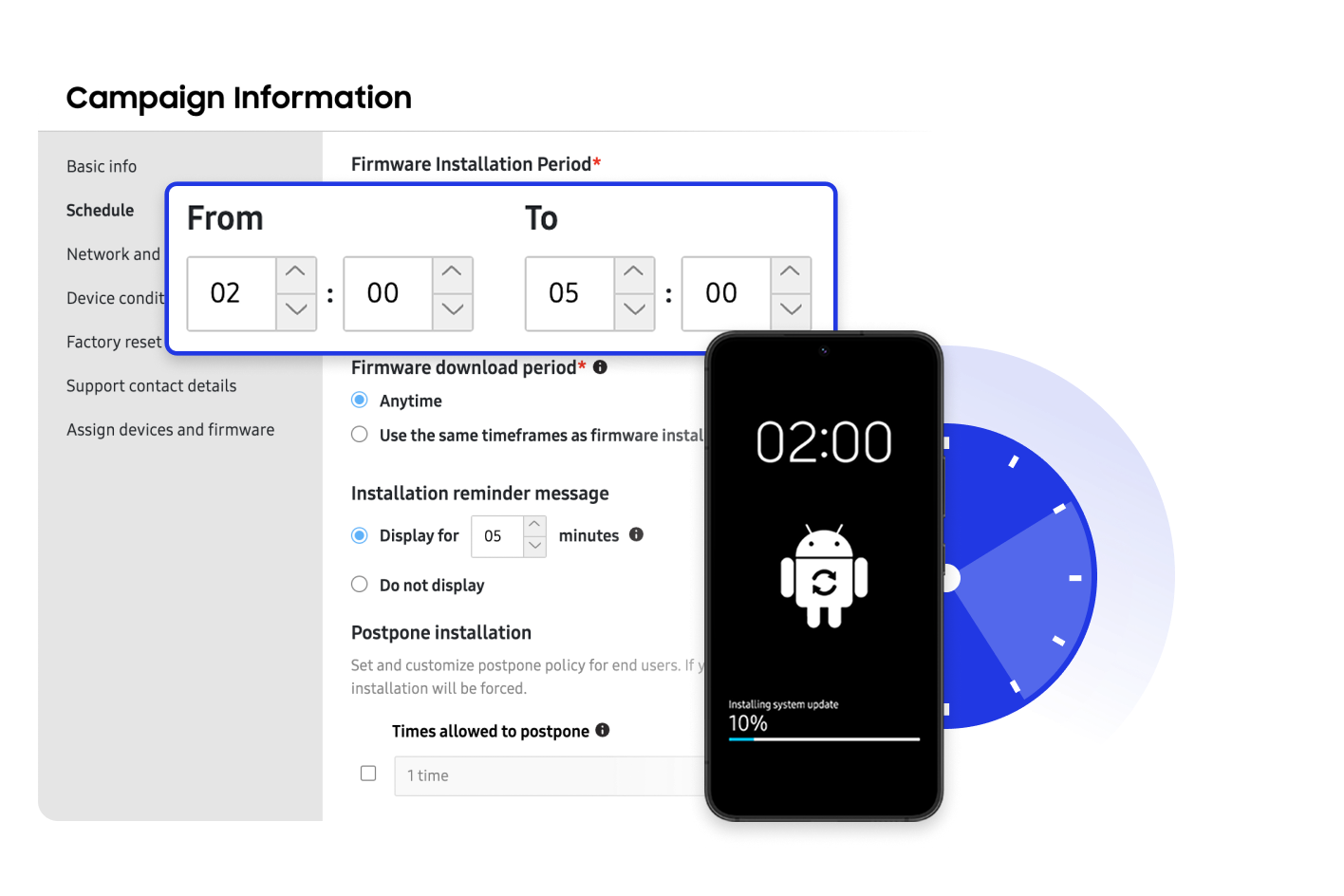Schedule update devices at the times that work best for your work force