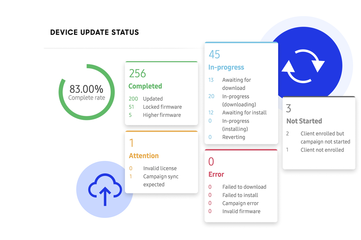 Assicura la supervisione totale mediante il monitoraggio del dashboard basato su cloud per lo stato di aggiornamento.